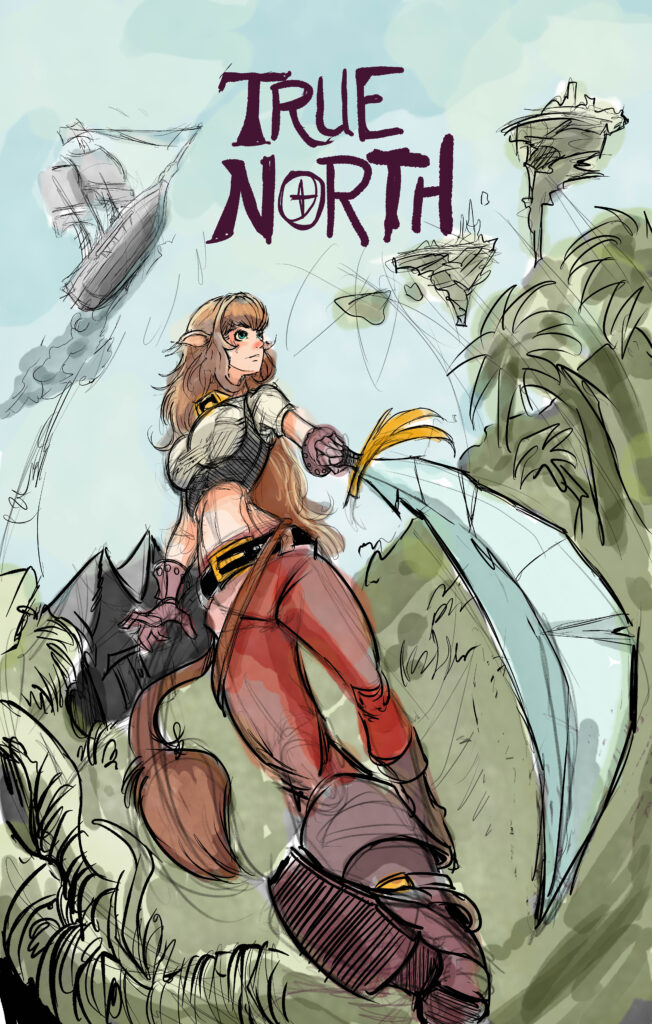 True North is a fantasy comic set in the sky world of Aetherra. At first glance, the islands float peacefully above the clouds; however, danger hides in every corner. Pirates fly between the islands, and relics rest in hidden places. In addition, magic, alchemy, and mana shape the world in unpredictable ways. As a result, every journey brings both wonder and risk.