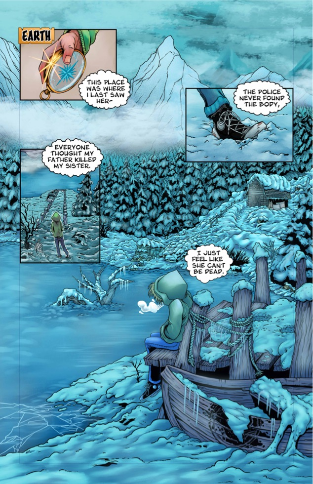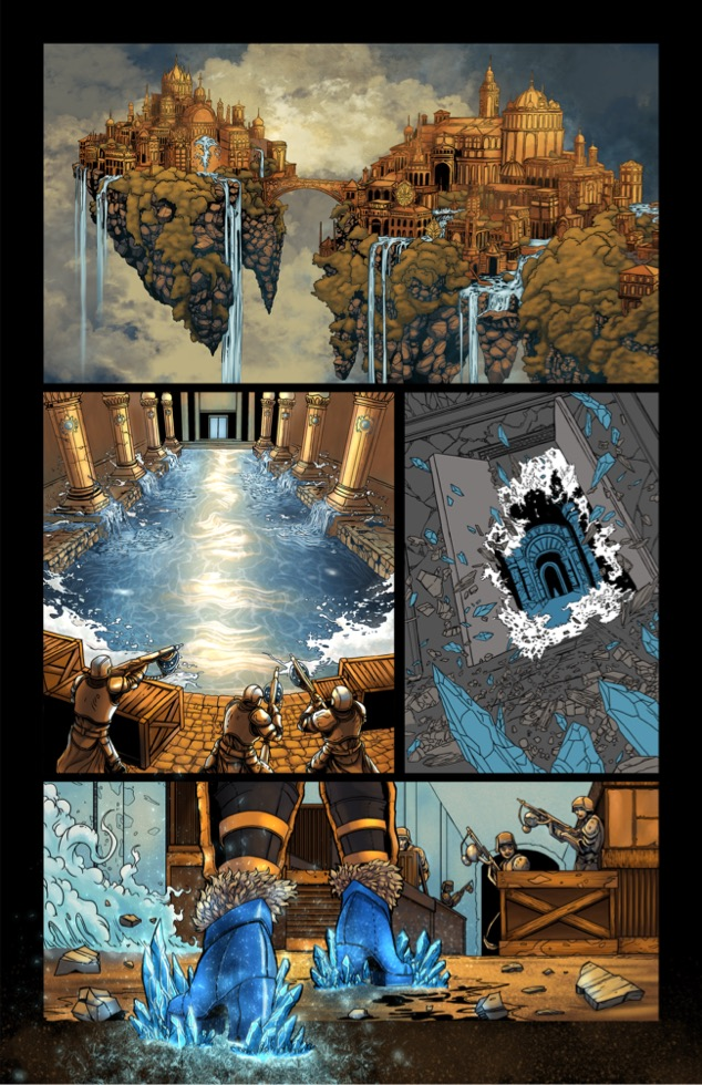 True North is a fantasy comic set in Aetherra—floating islands, skyships, relics, and forbidden alchemy. Thomas is pulled from Earth into a world built on old sins, and learns that every act of creation demands a cost.
